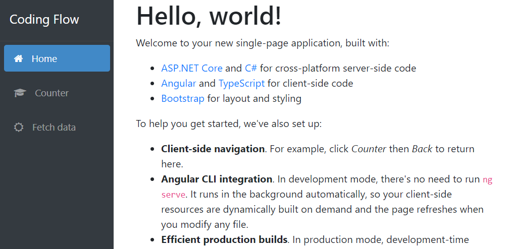 ASP.NET Core 2.1 includes built-in templates for creating Single Page Applications using Angular or React. These templates can be accessed using Visual Studio 2017 or the command prompt. In this guide we will use the command prompt, since this approach works for Windows, Mac, or Linux.